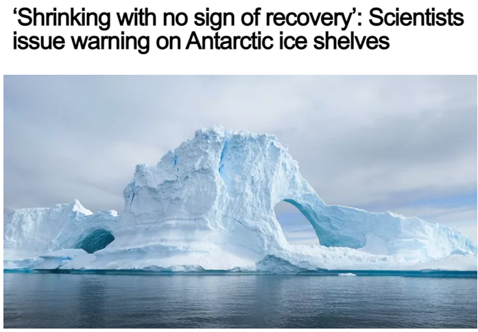 近日,英国研究人员发布的一份最新报告显示,1997年之后的25年里,南极冰架的体积缩小了40%以上,这进一步加剧了全球海平面上升的风险,并对海洋环流产生影响。