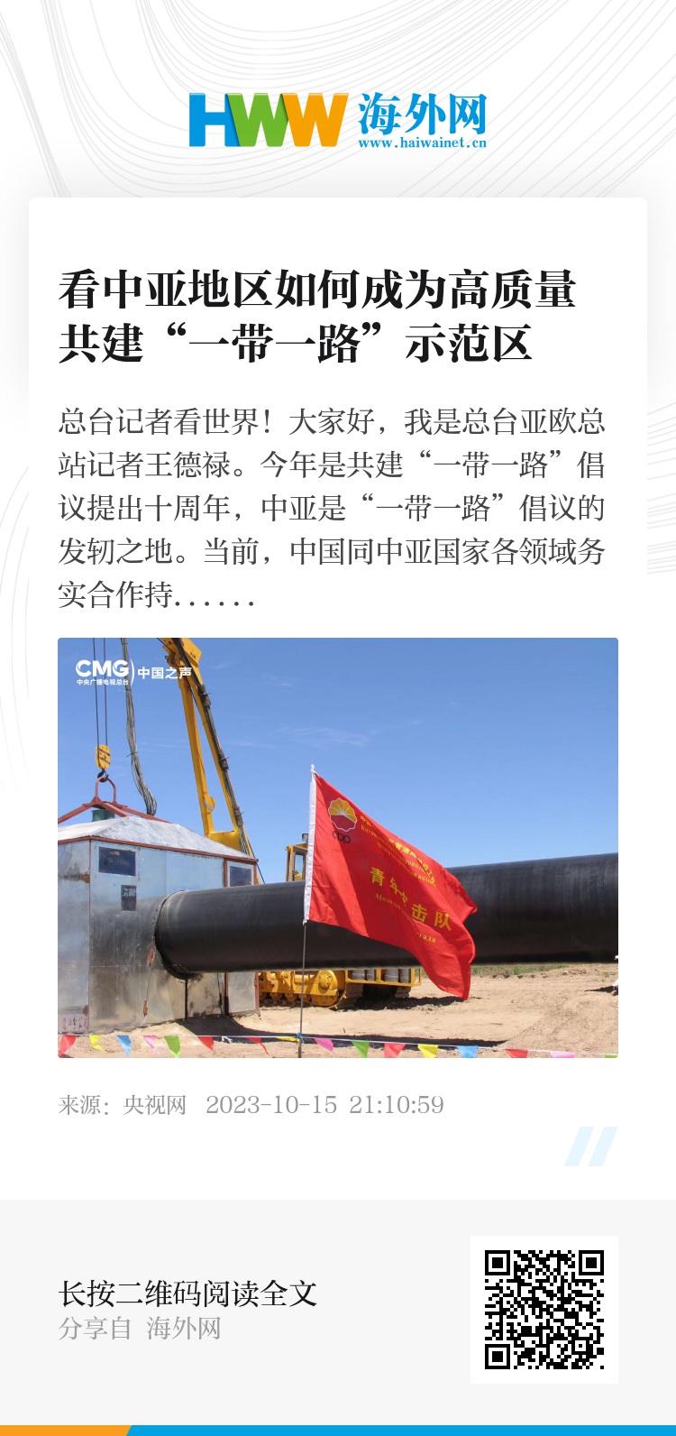 今年是共建“一带一路”倡议提出十周年,中亚是“一带一路”倡议的发轫之地。当前,中国同中亚国家各领域务实合作持续深化,中亚地区已成为高质量共建“一带一路”的示范区。