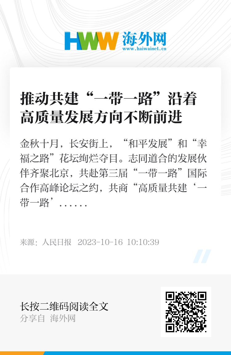 通过高质量共建“一带一路”,中国式现代化的发展经验将不断为共建国家提供借鉴。