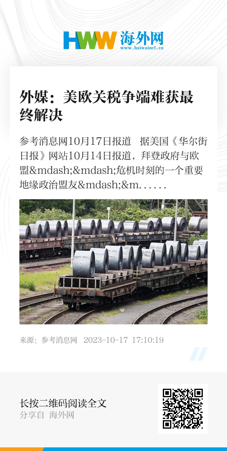 参考消息网10月17日报道 据美国《华尔街日报》网站10月14日报道,拜登政府与欧盟——危机时刻的一个重要地缘政治盟友——的关系正受到特朗普时期金属关税政策的考验,而这一政策是白宫试图取消的。