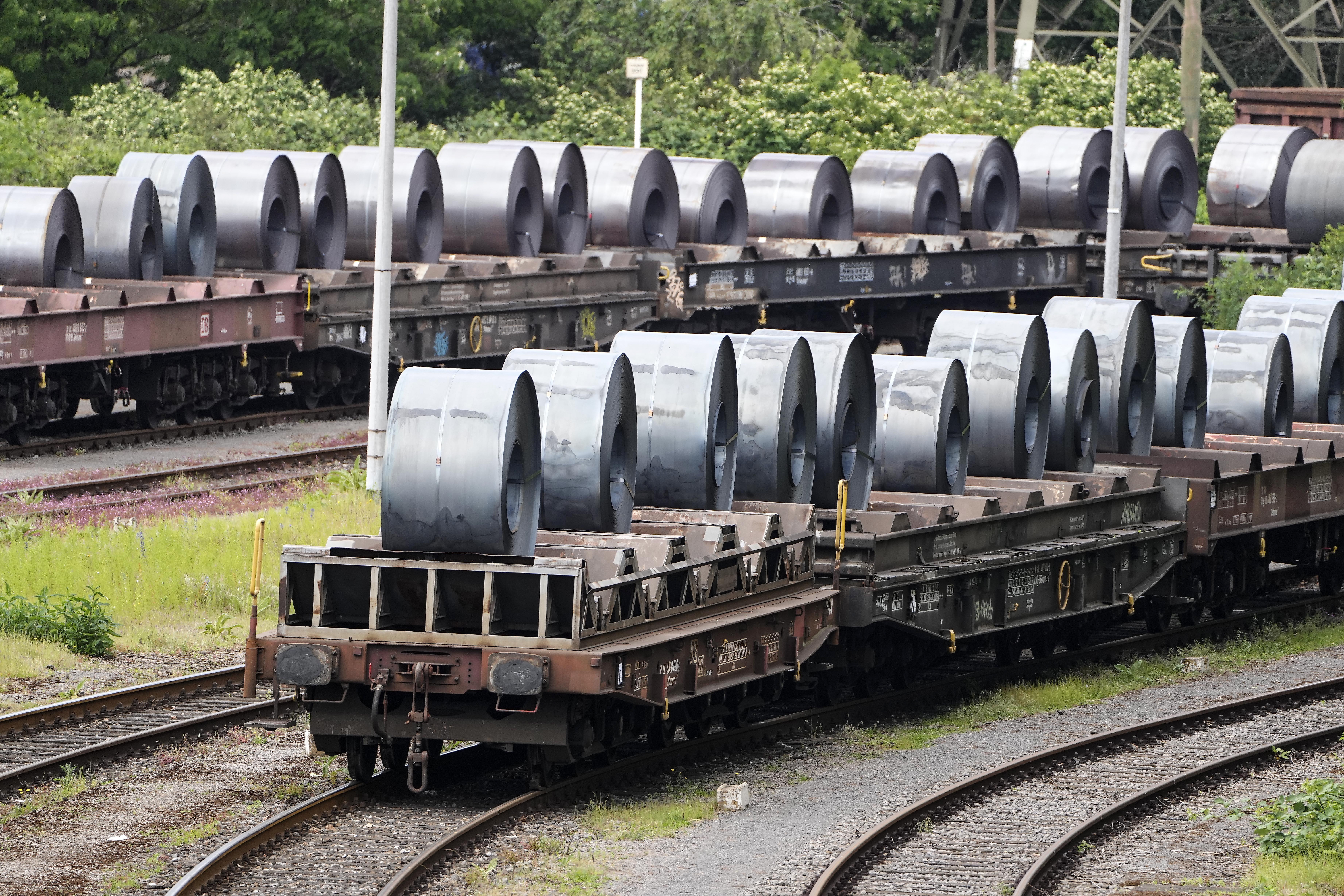 德国杜伊斯堡一家钢铁厂生产出来的钢卷(美联社)
