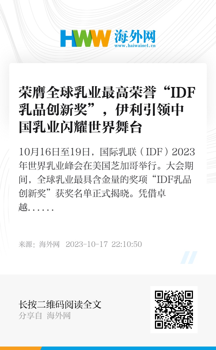本年度“IDF乳品创新奖”旨在展现全球乳业的创新活力,树立全球行业创新榜样,推动实现联合国可持续发展目标。秉承“全面价值领先”目标,伊利以消费者为中心,持续加大创新研发投入,致力于为消费者提供全生命周期的营养支持,并通过创新研发驱动企业实现可持续发展。