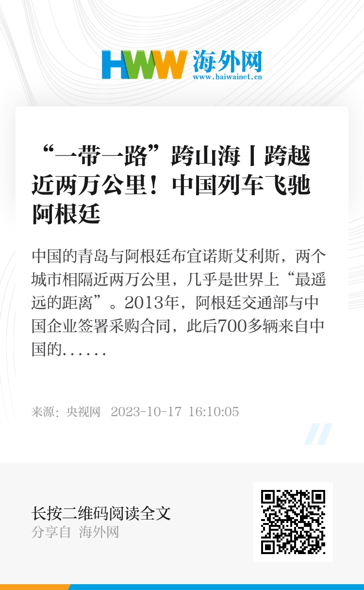 如今写在“中国列车”的出海日志上的,不只是“中国制造”的现代化设备,更是10年如一日的金牌售后服务。贺路说,身边的每个阿根廷的朋友,都希望今后会有更多中国列车,驰骋在潘帕斯草原的每个角落。
