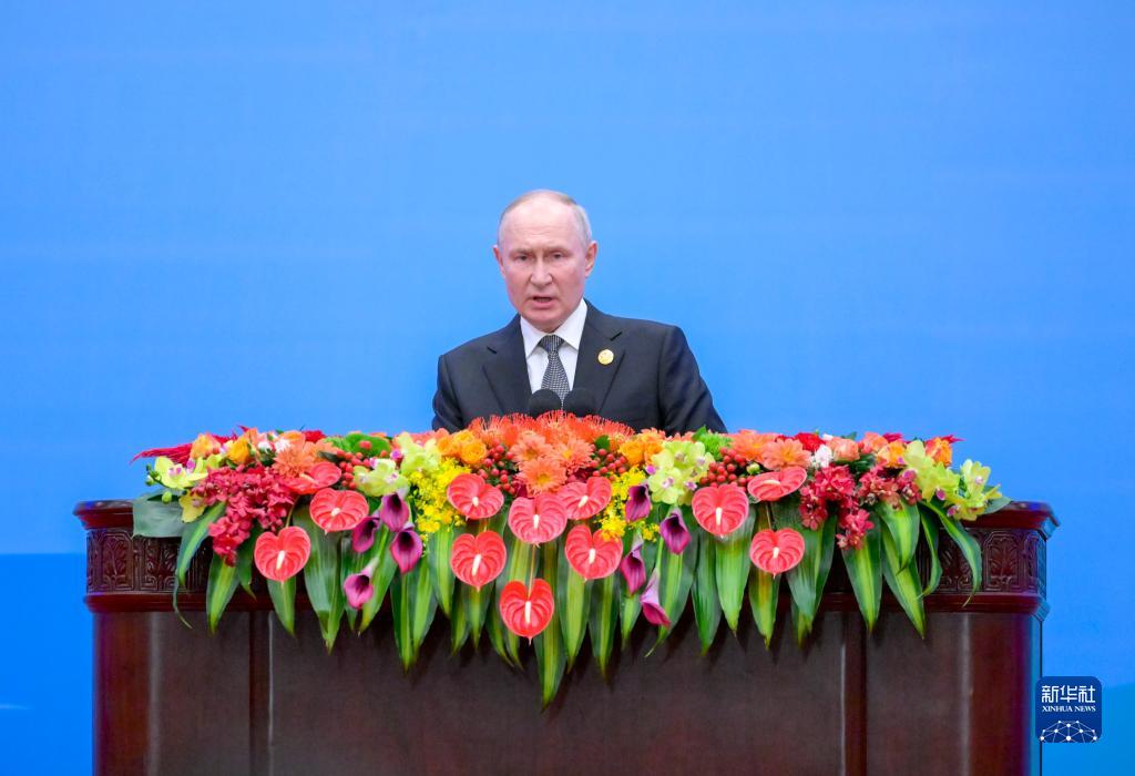 10月18日,第三届“一带一路”国际合作高峰论坛开幕式在北京举行。这是俄罗斯总统普京在开幕式上致辞。新华社记者 李学仁 摄