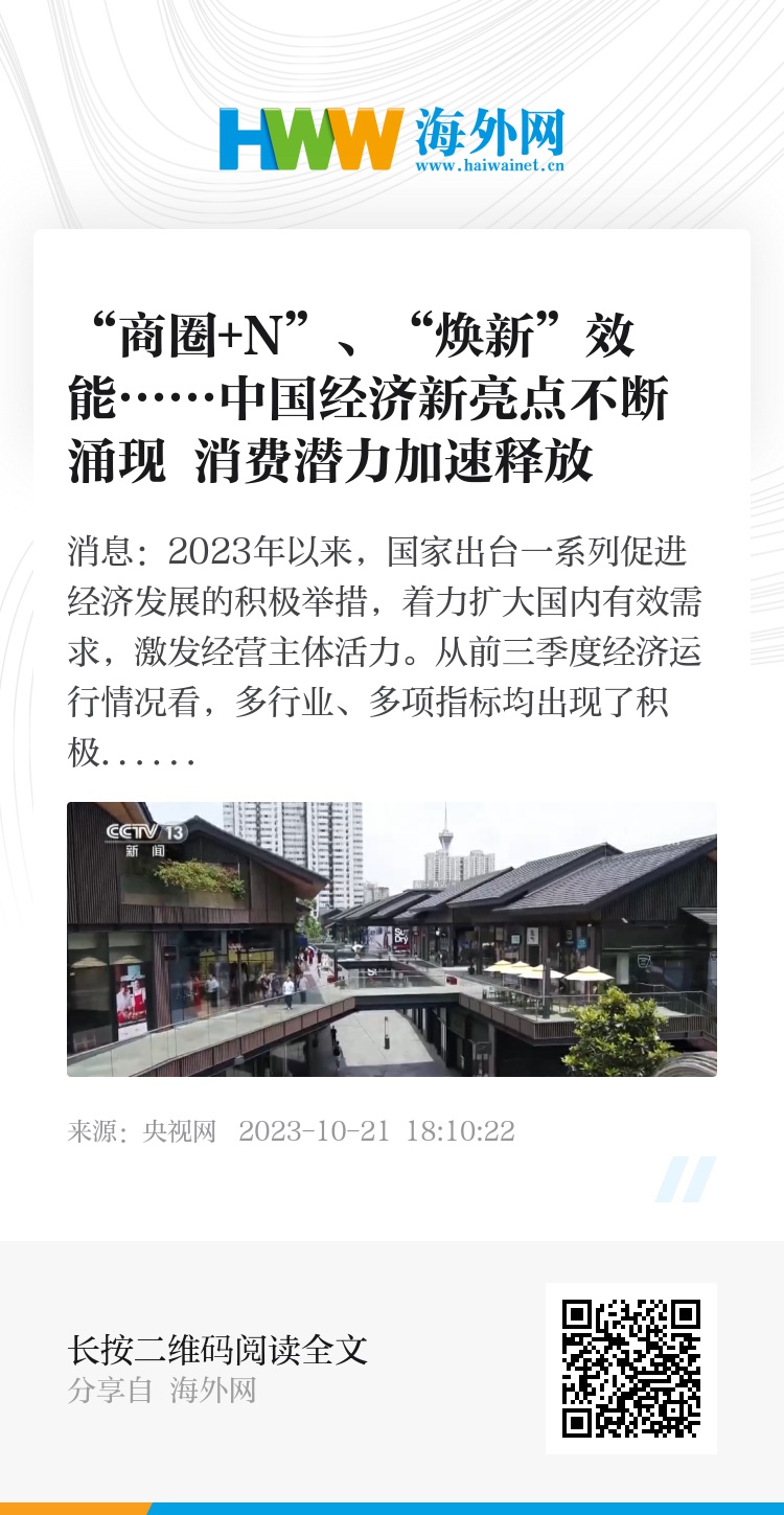 不仅是北京,2023年以来,一批新商圈在各地焕新亮相,“商圈+展览”“商圈+潮玩市集”“商圈+小型音乐会”和赛事等,正在形成新的消费增长极。最新数据显示,我国社会消费品零售总额和服务消费总额保持增长势头,消费潜力正在加速释放。