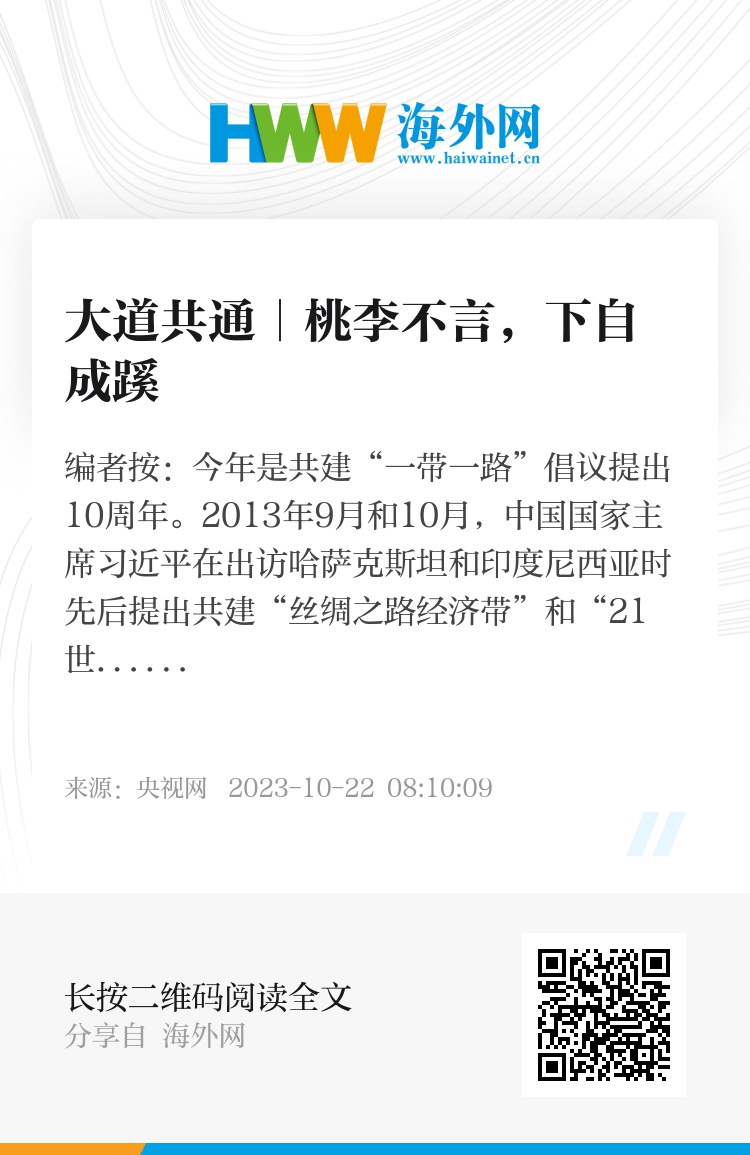 编者按:今年是共建“一带一路”倡议提出10周年。2013年9月和10月,中国国家主席习近平在出访哈萨克斯坦和印度尼西亚时先后提出共建“丝绸之路经济带”和“21世纪海上丝绸之路”的重大倡议。倡议提出以来,“一带一路”的“朋友圈”越来越大,好伙伴越来越多,合作质量越来越高,发展前景越来越好。共建“一带一路”已成为深受欢迎的国际公共产品和国际合作平台。