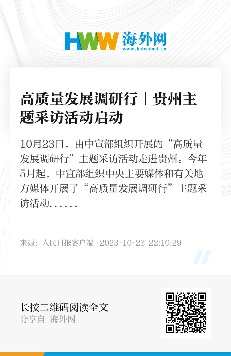10月23日,由中宣部组织开展的“高质量发展调研行”主题采访活动走进贵州。今年5月起,中宣部组织中央主要媒体和有关地方媒体开展了“高质量发展调研行”主题采访活动。贵州是此次主题采访活动的收官省份。