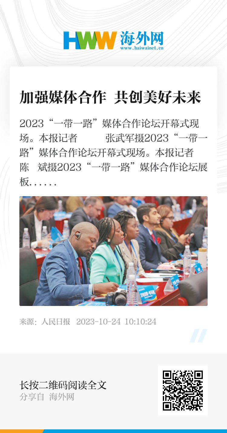 近日,来自世界多个国家的众多记者、学者和政府官员相聚北京,参加以“加强媒体合作,共创美好未来”为主题的2023“一带一路”媒体合作论坛。论坛设置了国际传播“丝路奖”颁奖活动和“一带一路”区域合作分论坛,这无疑是一件盛事。