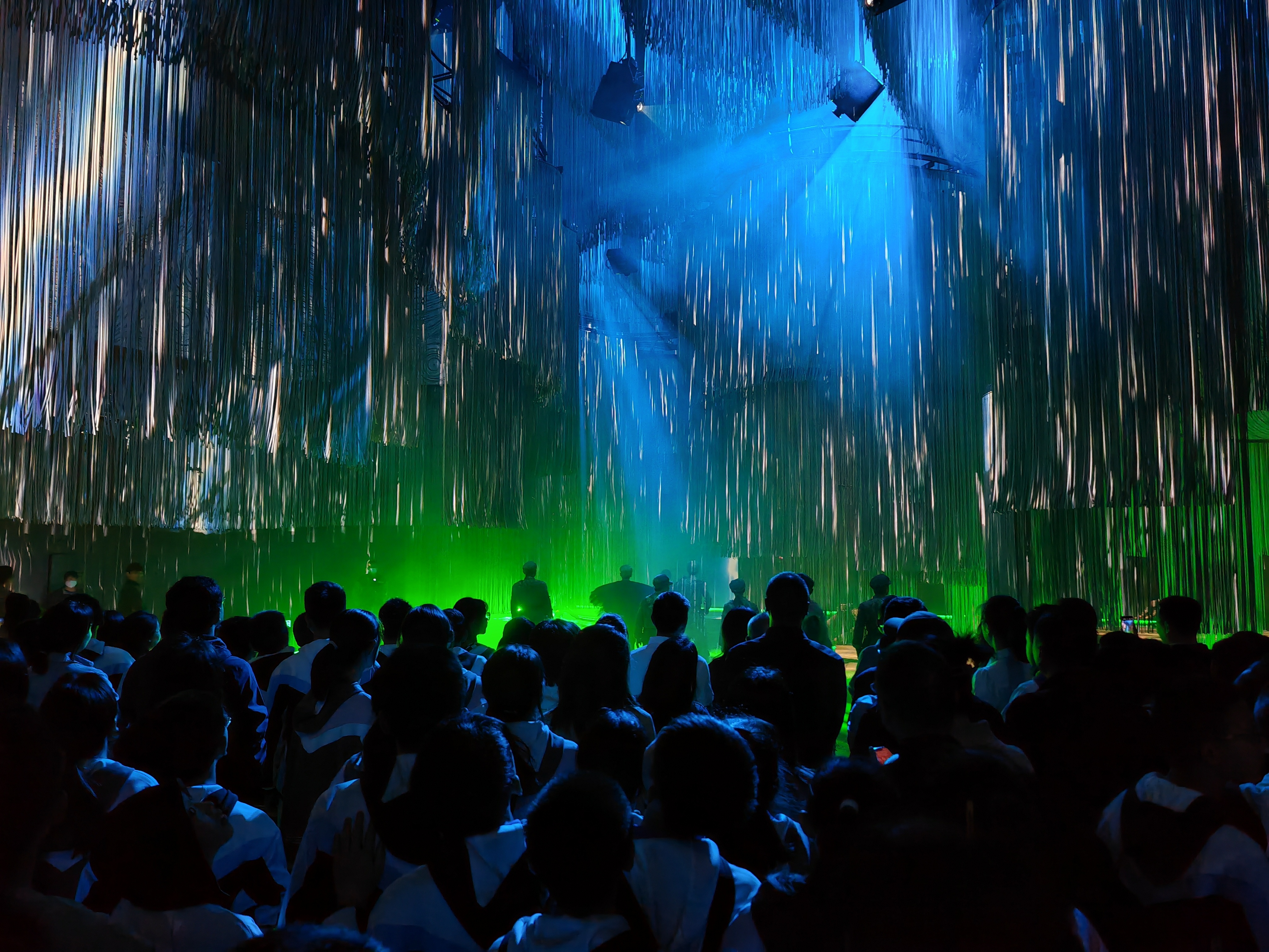 行走在“红飘带”的内部,行浸式场景切换让访客时而为“障日风多雾不开”的革命挫折皱眉扼腕,时而乘着“抬眸四顾乾坤阔”的时势浪潮。其中《红飘带·伟大征程》整体以无名英雄、血火洗礼、伟大转折、砥砺征途、胜利丰碑以及新时代新长征六个篇章组成,集合AI虚拟交互、全息影像、全维度机械运动、虚拟现实技术、三维声场等最新科技手段,数字化全景再现长征之路。《红飘带·多彩飞越》则是贵州首个8K电影级巨型LED球幕飞行影院的首演剧目,可以让观众犹如亲身飞行于多彩贵州壮美山河之上,让观众在飞行影院全方位、全视角、全景领略贵州大美风光。