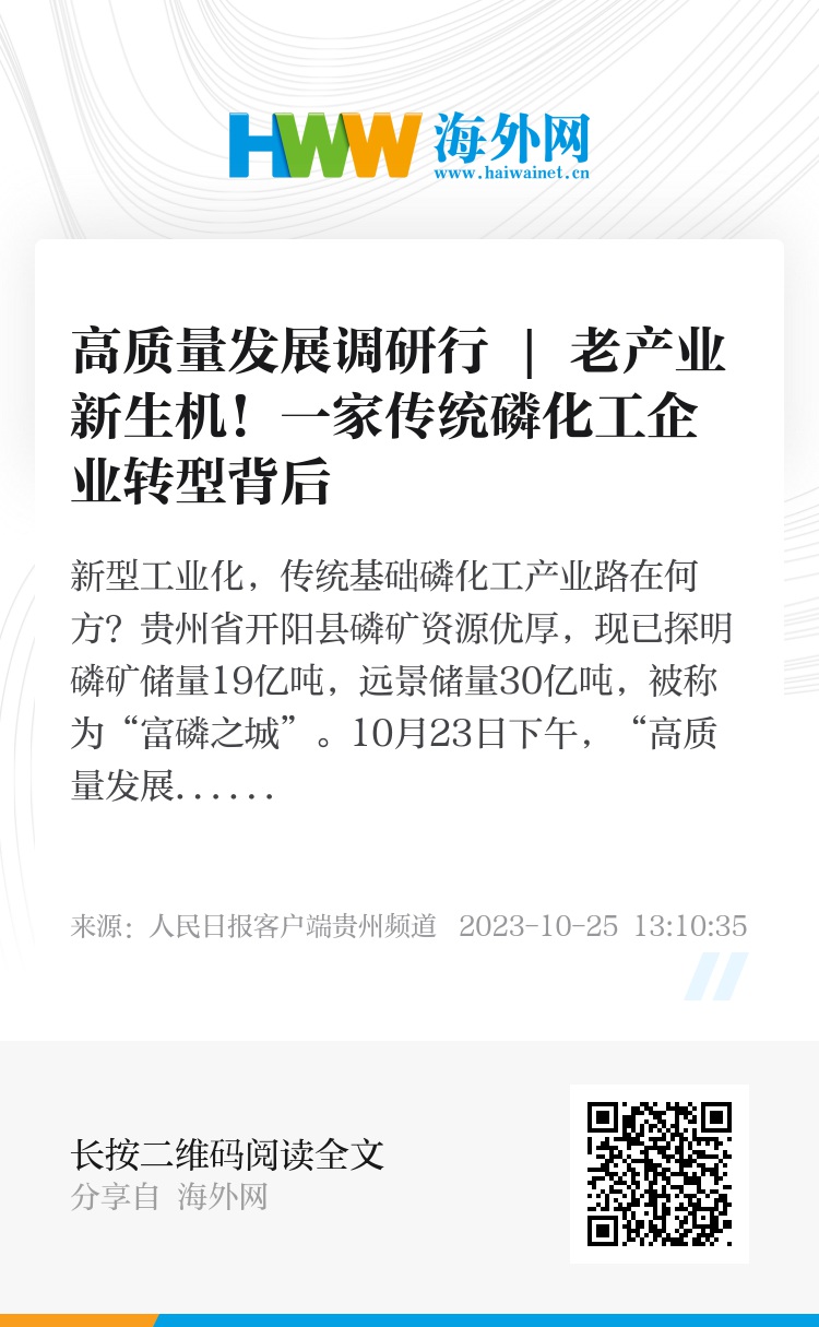 成功转型的背后,是贵州省大力推进新型工业化,通过政策引领、资金扶持等一系列举措扶持实体经济成功转型的缩影。如今仅开阳县工业经营主体达2408户,规模以上工业企业总数42户,搭建各类创新平台8个,培育了科技型中小企业18家、“专精特新”中小企业4家,逐渐形成以现代化工为主导的工业产业体系,构建起从磷矿到电池的全产业链发展格局。“绿色磷都”的品牌越擦越亮。(苏滨 顾兰云)