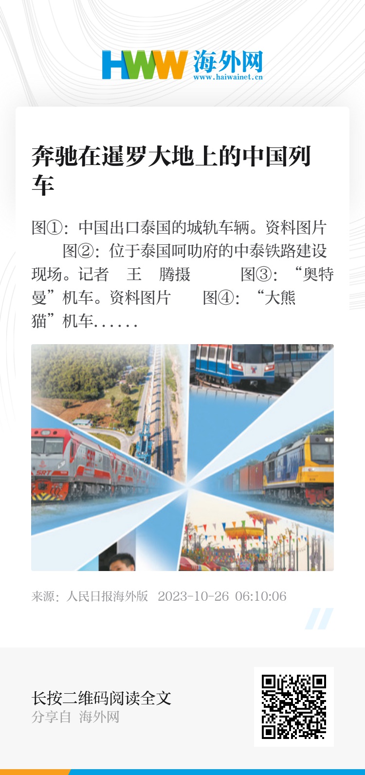 从机车到地铁,从业务交流到文化交融,中国的列车奔驰在暹罗大地上,越来越多的中车人和泰国车迷担当起中泰友谊的使者,共同续写“一带一路”共建共赢的美好画卷,为区域经济社会持续发展提供强劲动力。(袁彩霞 金万宝)