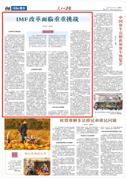 巴基斯坦《论坛快报》总编辑侯赛因·纳韦德近日在该报官网刊发评论称,尽管IMF已经实行了一些改革,将部分权力向新兴市场和发展中国家开放,但仍需通过更广泛的改革提高包容性,确保IMF计划和政策的透明度,实施有助于各个成员国金融稳定和货币合作的经济政策。