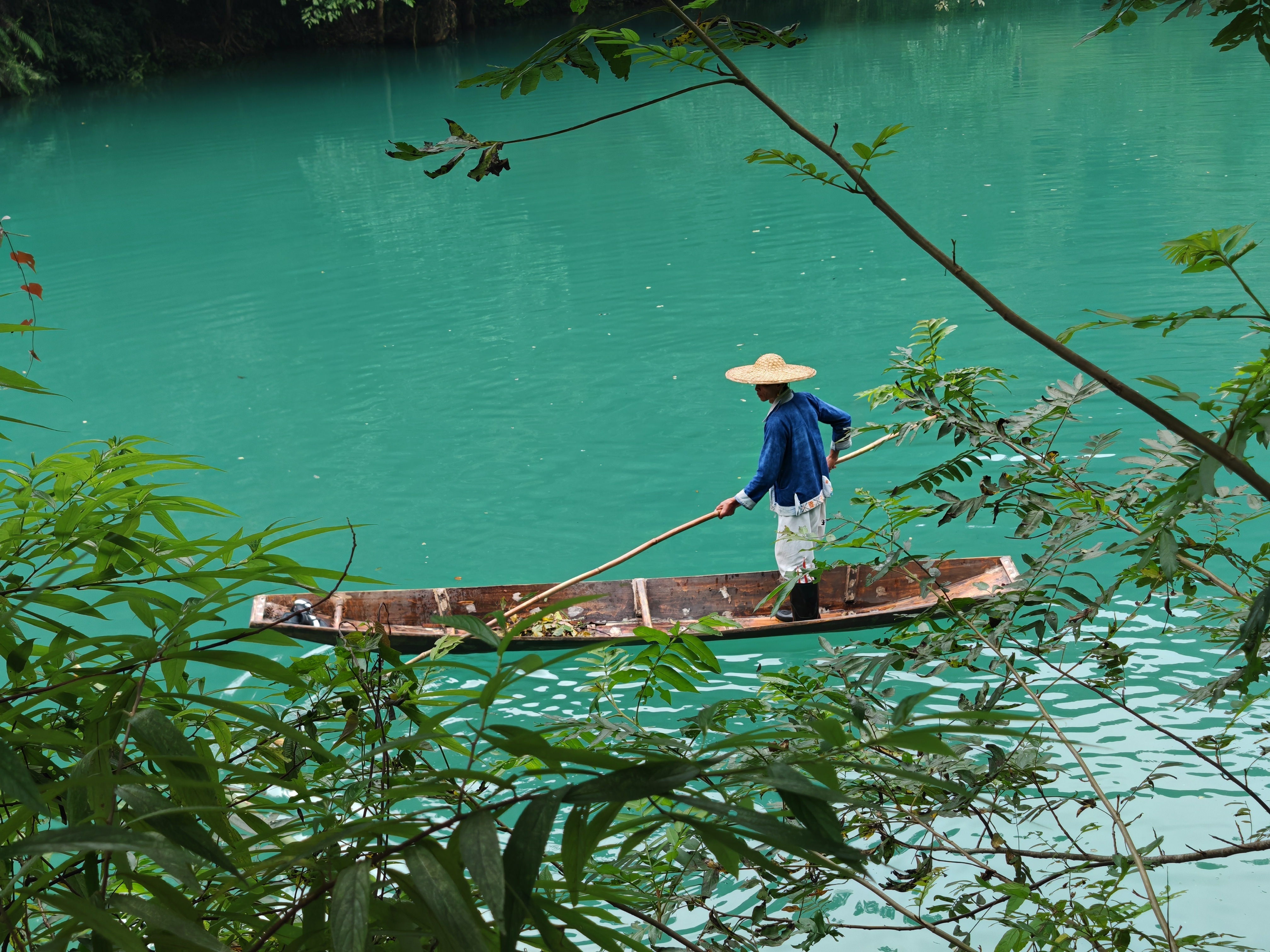 船夫的画桡在浅青色的油布一般的水面上拂过时可以看见一层层多彩的波浪。棹动碧波落,船移彩蝶飞。此时游客就会明白荔波素有“地球上的绿宝石”之称的真正原因。这正是: