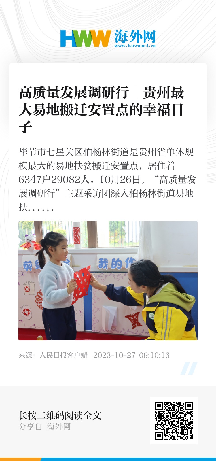 毕节市七星关区柏杨林街道是贵州省单体规模最大的易地扶贫搬迁安置点,居住着6347户29082人。10月26日,“高质量发展调研行”主题采访团深入柏杨林街道易地扶贫搬迁安置点,探寻幸福日子背后的生动实践。