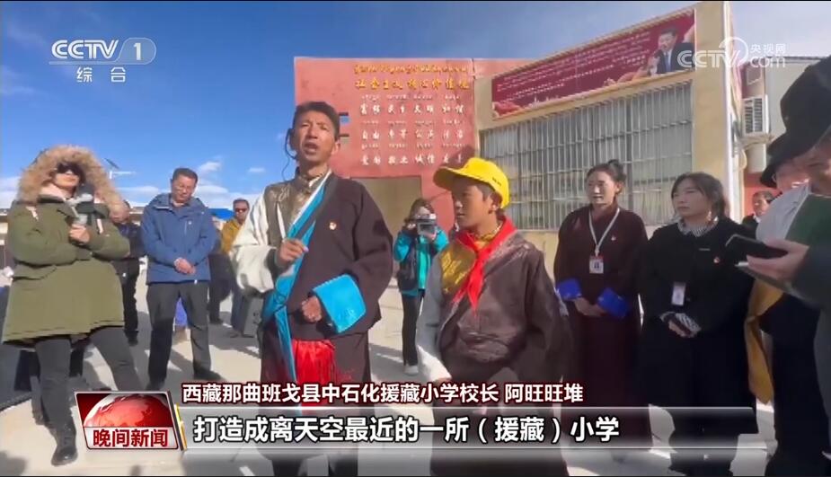 西藏那曲班戈县中石化援藏小学校长 阿旺旺堆:既然老百姓把这些小孩交给我们了,我们一定要(以)认真负责任的态度,把小孩一定要教育好,努力把这所学校打造成“离天空最近”的援藏小学。