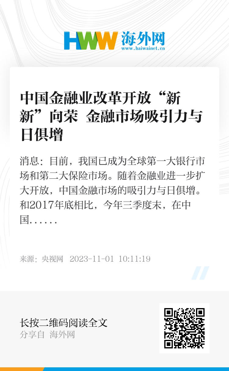 今年以来,我国在银行保险等领域出台了一系列开放举措,金融业开放继续迈出有力步伐。