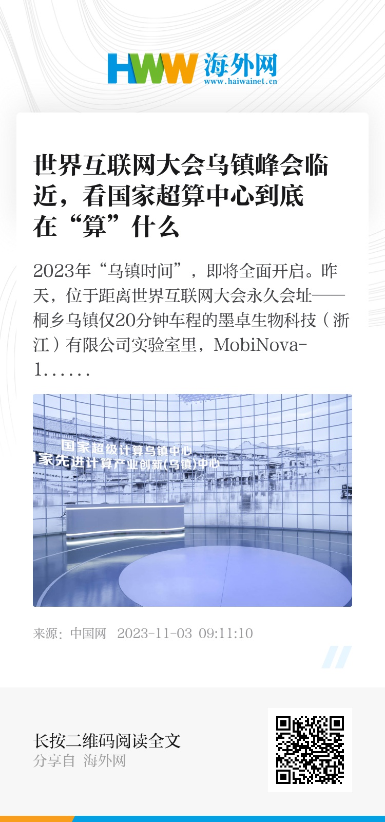 “乌镇之光”“算”出可喜成果——秉持辐射全国的理念,目前已有1.2万客户。这些客户来自于全国各地的重点实验室、科研院所、高校及创新企业等,涵盖气候气象、工业设计、生物信息、人工智能等领域。