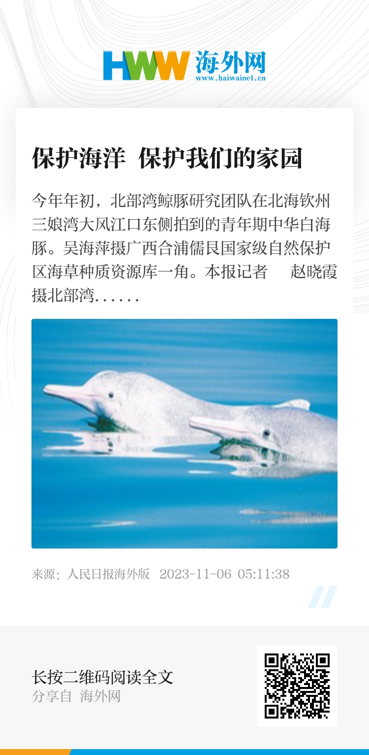 在北部湾海域,除了合浦儒艮国家级自然保护区,广西钦州三娘湾以及附近的大风江海域,也是中华白海豚的栖息地。