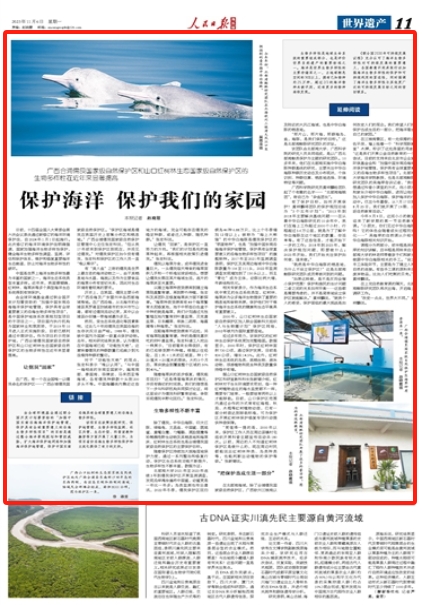 北部湾大学2021年至2023年连续3年到儒艮保护区开展监测调查,发现沿岸滩涂遍布中国鲎,幼鲎更是一年比一年多;鸟类监测也传出喜讯,2022年冬季,儒艮保护区回归候鸟46种6.88万只,比上个冬季增加12倍以上;被称为“海上大熊猫”的中华白海豚是儒艮保护区的“明星物种”,也是“加强中国东南沿海海洋保护地管理,保护具有全球重要意义的沿海生物多样性项目”的旗舰物种。2017年至2021年监测调查表明,保护区及其周边海域中华白海豚数量为106至111头,2022年监测调查发现增加到了150头以上,而且“青壮”成为主体,幼豚比例大增,年龄结构优化。