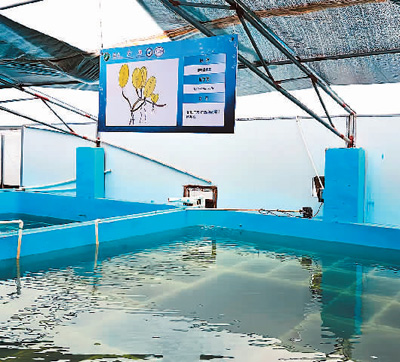 广西合浦儒艮国家级自然保护区海草种质资源库一角。本报记者 赵晓霞摄