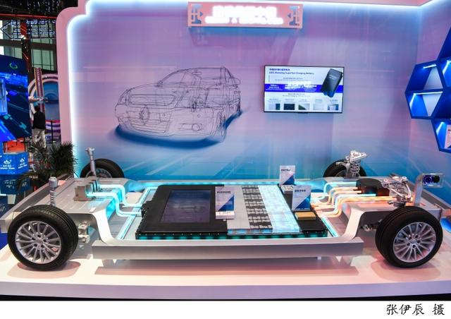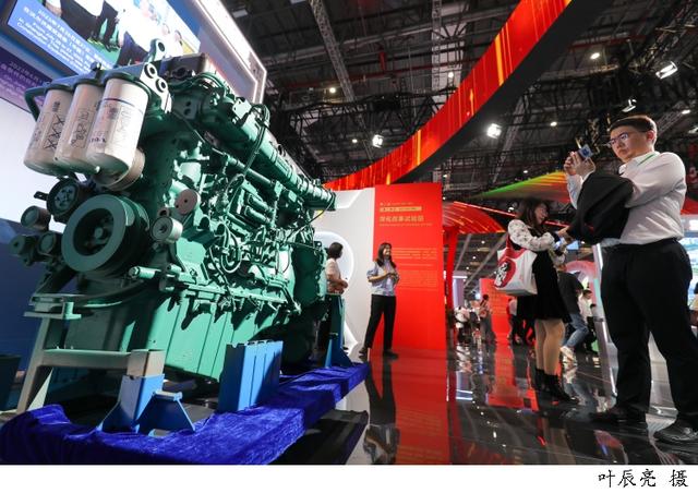 中国馆现场展出中国(上海)自由贸易试验区进口的再制造发动机产品模型。
