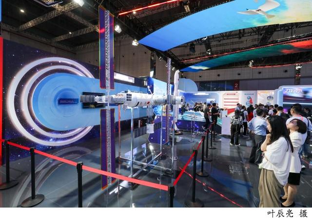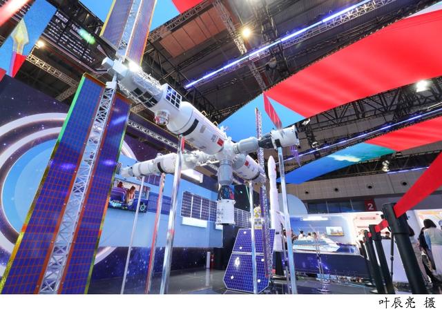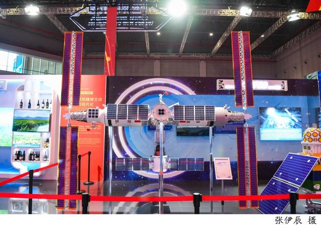 中国馆展出的国家级太空实验站——中国空间站模型。