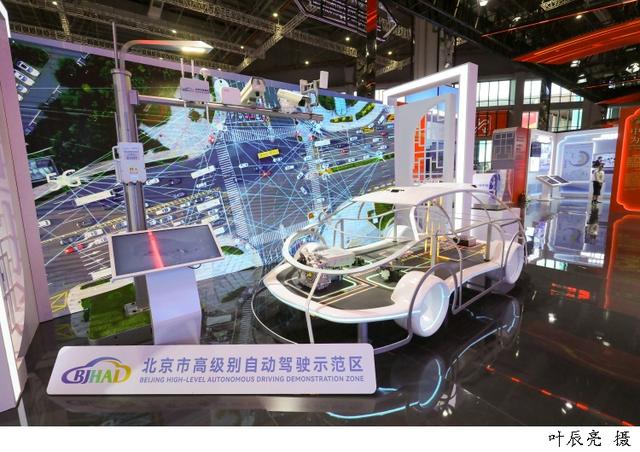中国馆内展出北京市高级别自动驾驶示范区模型。