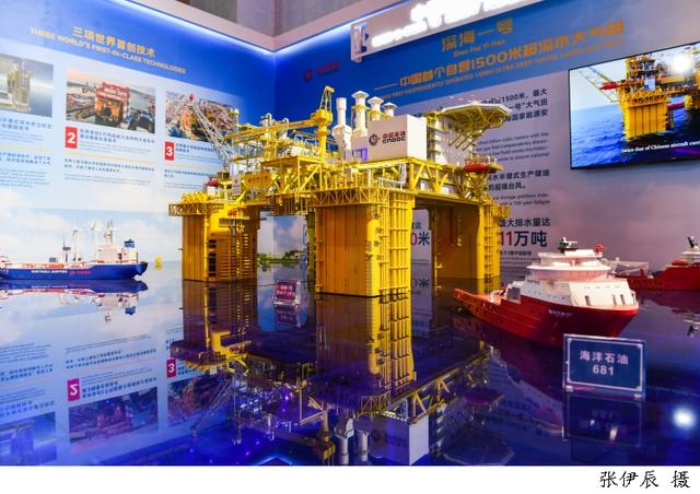 中国馆展出的中国首个自营1500米超深水大气田深海一号。