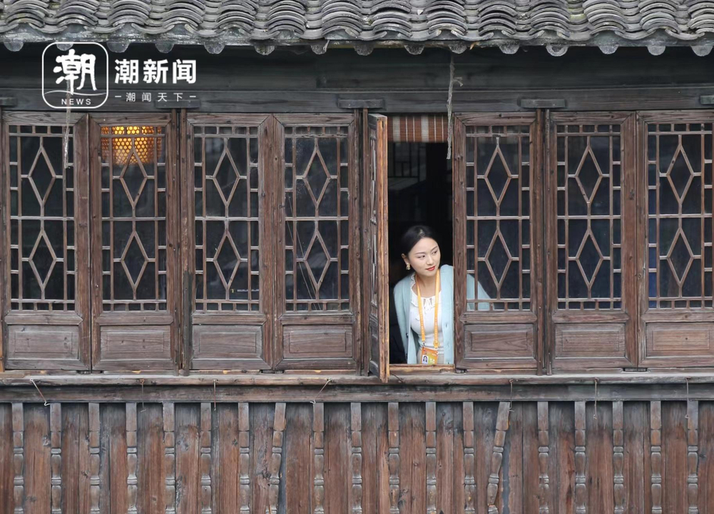 游客纷至沓来,偏爱窗边留影——身着汉服,半倚木窗,镜头一闪,便将江南的温婉光景,全都框进。