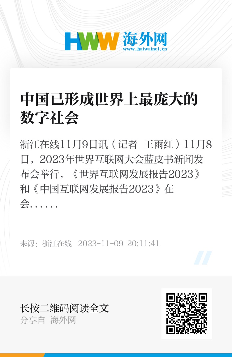 浙江在线11月9日讯(记者 王雨红)11月8日,2023年世界互联网大会蓝皮书新闻发布会举行,《世界互联网发展报告2023》和《中国互联网发展报告2023》在会上发布。