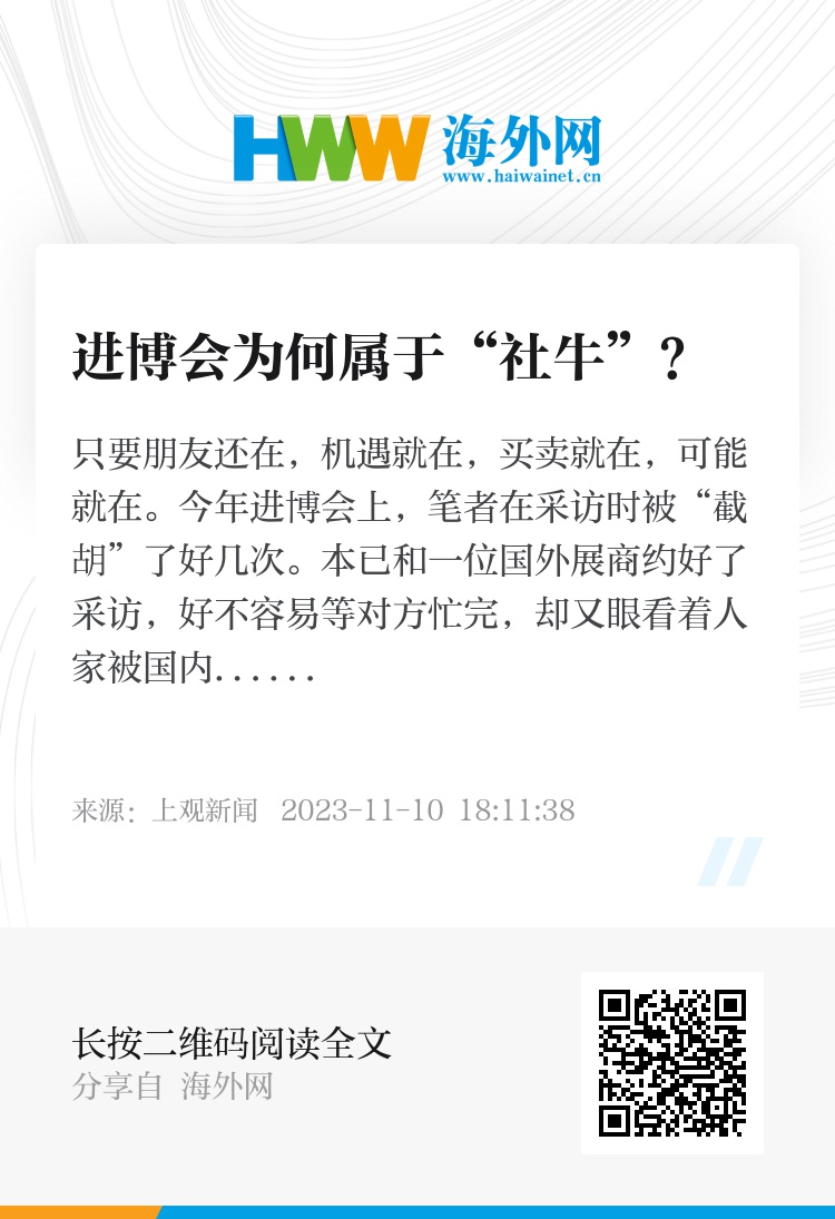如果说日常社交里的“社牛”是指性格外向、自来熟的人,进博会上的“社牛”还得有点真本事。依笔者看,背后的门道也不复杂,那就是秉着“来的都是客,有钱一起赚”的原则广交朋友。