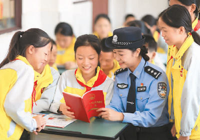 10月11日,民警向贵州省赤水市大同小学学生宣传网络保护及相关法律知识。王长育摄(人民视觉)