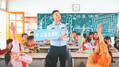 今年10月,江苏如皋市委网信办联合东陈镇派出所,走进东陈小学开展个人信息保护普法教育活动。徐 慧摄 (人民视觉)