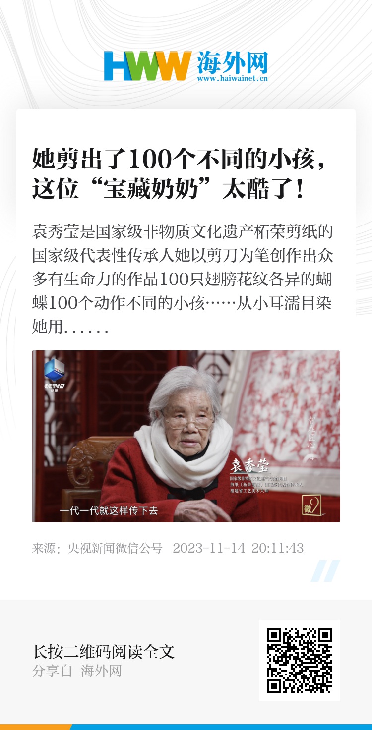 正是靠着这样的精神,袁奶奶以剪刀代笔,把自己的思想、希望注入到剪纸作品中,创作出具有生命力的艺术品。许许多多的年轻人,通过袁奶奶了解到这项传统技艺,成了柘荣剪纸爱好者,为剪纸的传承注入了新的力量。