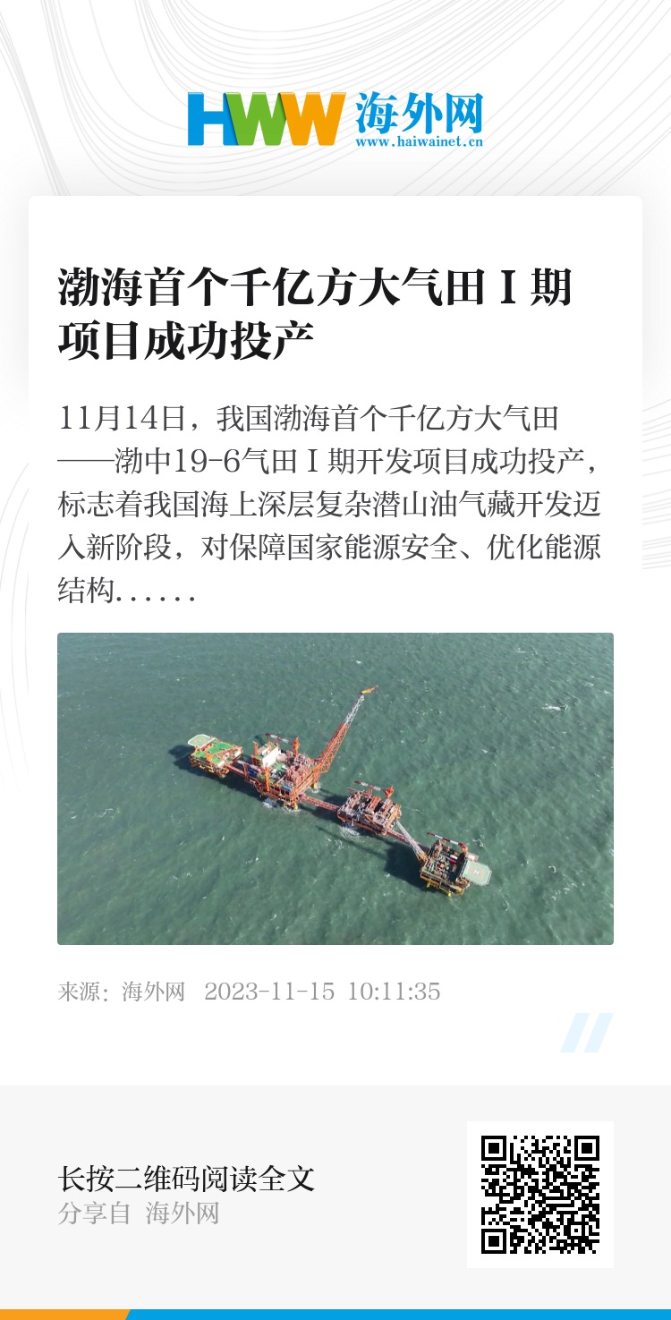 11月14日,我国渤海首个千亿方大气田——渤中19-6气田Ⅰ期开发项目成功投产,标志着我国海上深层复杂潜山油气藏开发迈入新阶段,对保障国家能源安全、优化能源结构具有重要意义。图源:视觉中国