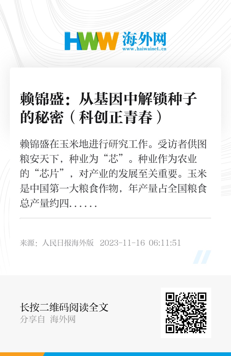 “未来几年,转基因、基因编辑作物产业化大有可为。我和团队会面向产业需求,针对产业发展瓶颈继续攻克科技难关,以基础及应用基础研究为源头供给,持续推动玉米等作物生物育种产品的更新迭代。”赖锦盛说。(陈渡归)