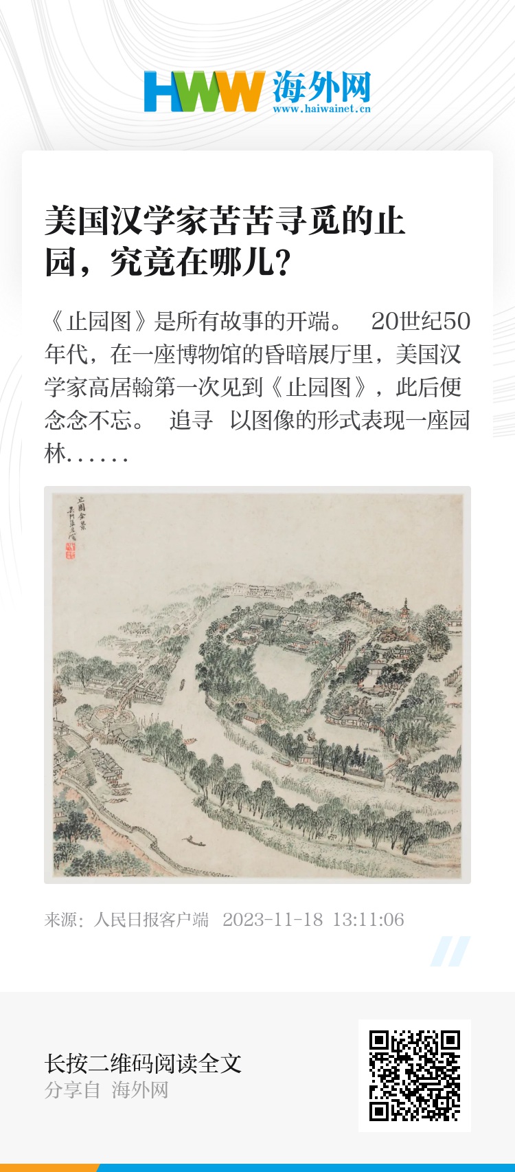 20世纪50年代,在一座博物馆的昏暗展厅里,美国汉学家高居翰第一次见到《止园图》,此后便念念不忘。