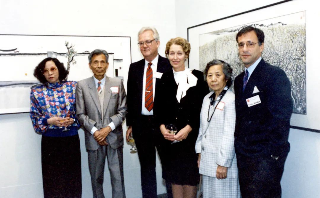 高居翰(左三)与吴冠中(左二)在画展上合影。高居翰之女莎拉提供