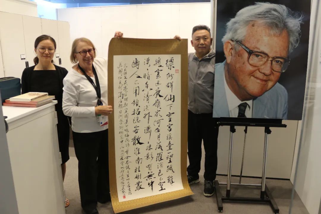 2018年8月,刘珊珊(左)与伯克利高居翰亚洲艺术研究中心白珠丽(中)、吴氏后人吴欢(右)合影。黄晓摄