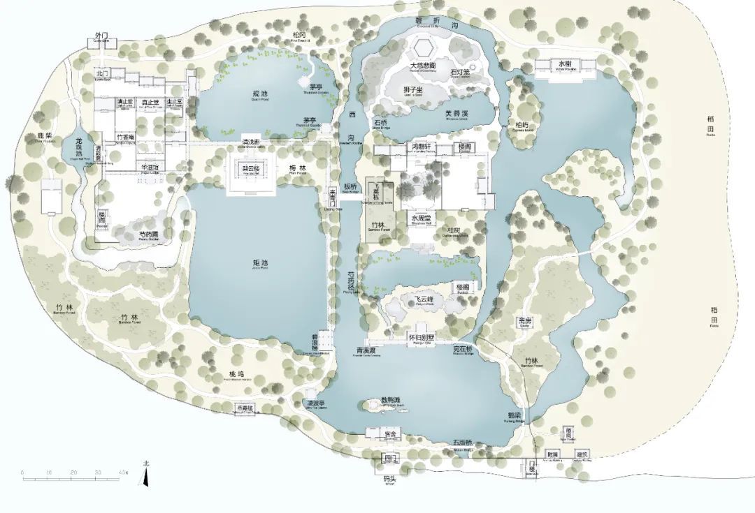 止园平面复原图。黄晓、王笑竹、戈祎迎绘