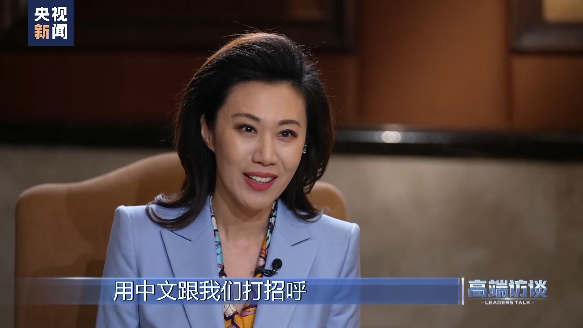 李曈曈:谢谢。中国的观众也非常高兴在电视上看到您用中文跟我们打招呼。