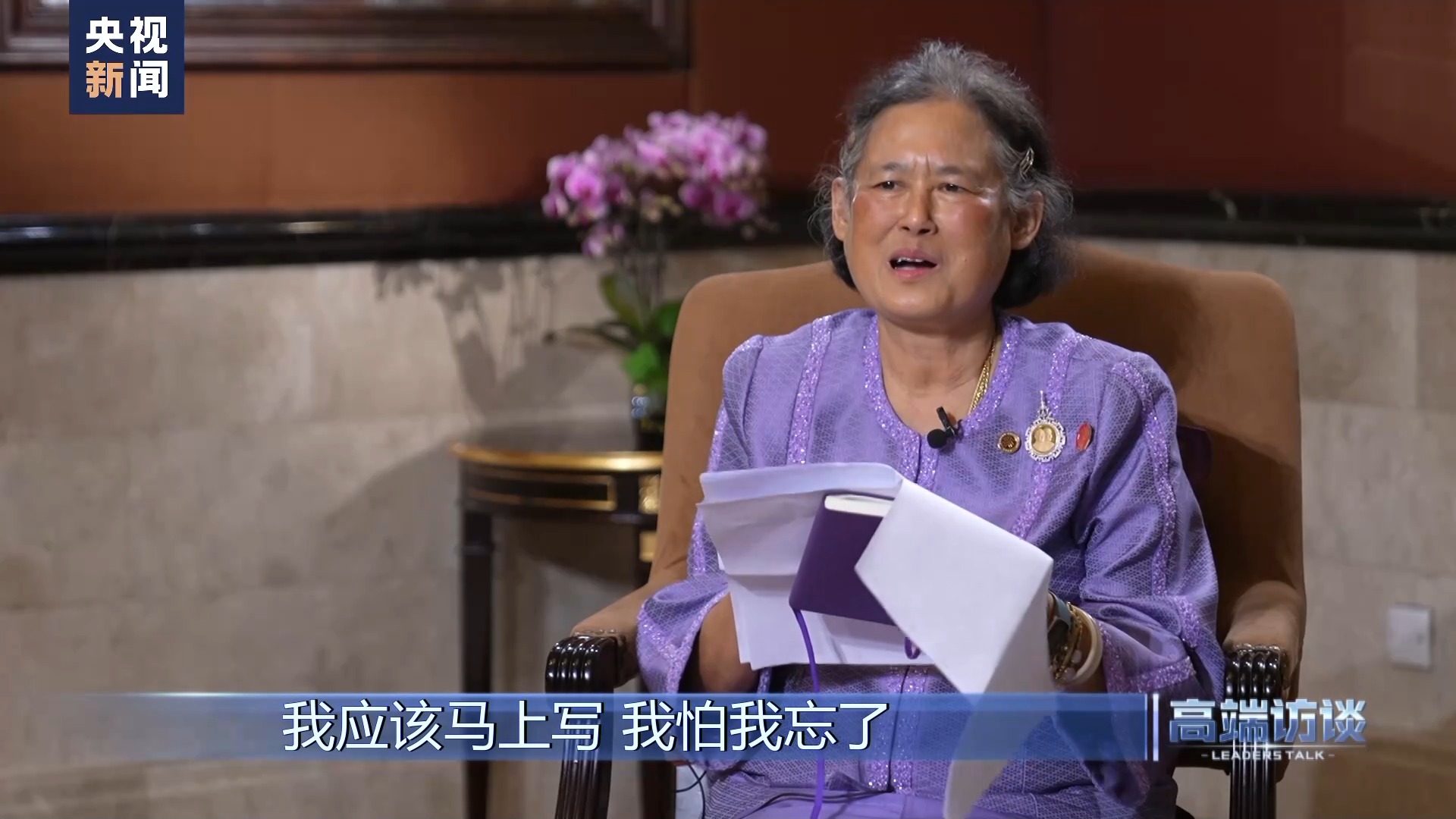 在刚刚的专访中,诗琳通公主坚持用中文接受采访。她谦虚地表示,中国人民身上那种坚韧的精神值得学习。