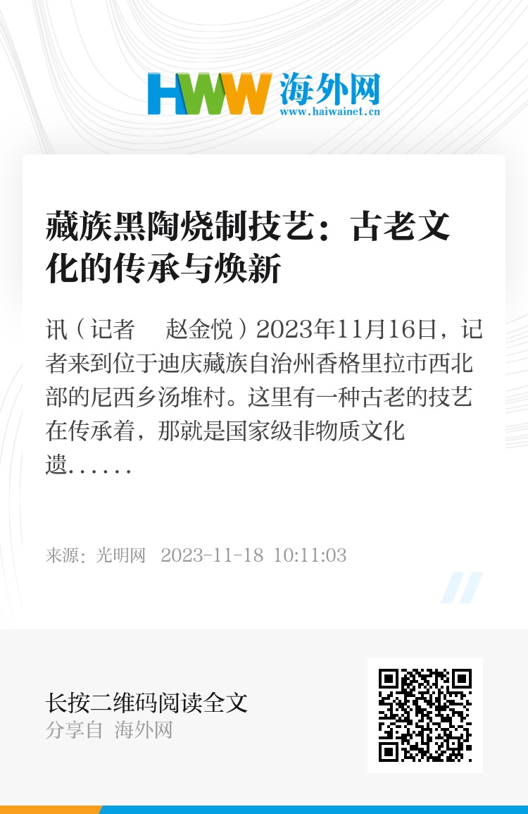光明网讯(记者 赵金悦)2023年11月16日,记者来到位于迪庆藏族自治州香格里拉市西北部的尼西乡汤堆村。这里有一种古老的技艺在传承着,那就是国家级非物质文化遗产——藏族黑陶烧制技艺。