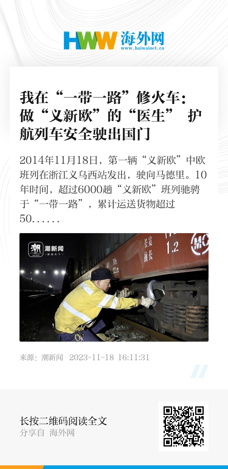 杭州北车辆段乔司运用车间党总支书记告诉潮新闻记者,检车员就好比中欧班列的“签证官”,只有检查合格、确认安全了,才能放行列车前往下一站,“我们的主要工作就是保障中欧、中亚班列的运行安全,确保这些班列安全驶出国门、准时抵达终点。”