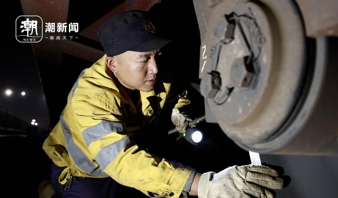 现场检车员检查车辆刹车片。潮新闻记者 王嘉楠 摄
