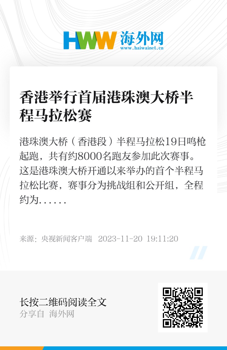 这是港珠澳大桥开通以来举办的首个半程马拉松比赛,赛事分为挑战组和公开组,全程约为21.1公里,起点和终点均位于港珠澳大桥香港口岸。