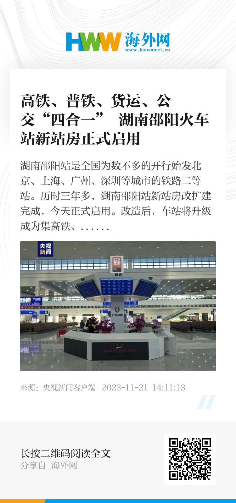 湖南邵阳站是全国为数不多的开行始发北京、上海、广州、深圳等城市的铁路二等站。历时三年多,湖南邵阳站新站房改扩建完成,今天正式启用。改造后,车站将升级成为集高铁、普铁、货运、公交“四合一”于一体的现代化大型综合交通枢纽。
