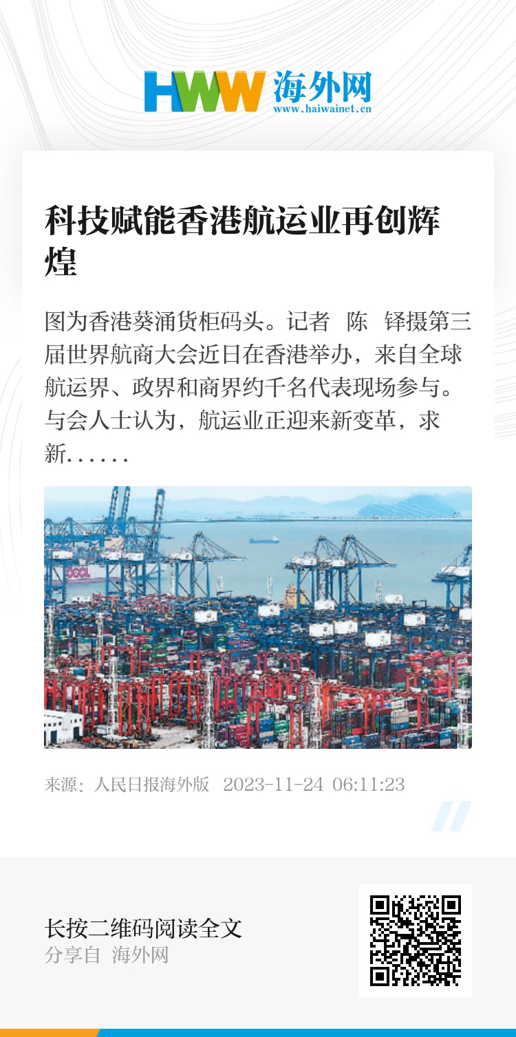 郑雁雄表示,“在新的历史起点上,相信大家一定会持续加大在港业务布局,把更多创新业务和解决方案带到香港,共同推动香港航运业数字化、智能化、绿色化发展,在香港国际航运中心转型升级中再创辉煌。”(记者 任成琦)