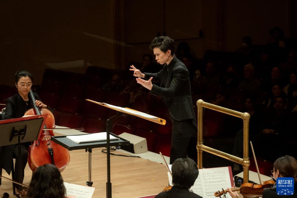 11月24日,中央音乐学院指挥家陈琳在美国纽约卡内基音乐厅执棒本次演出。新华社发(迈克尔·维奥拉果摄)