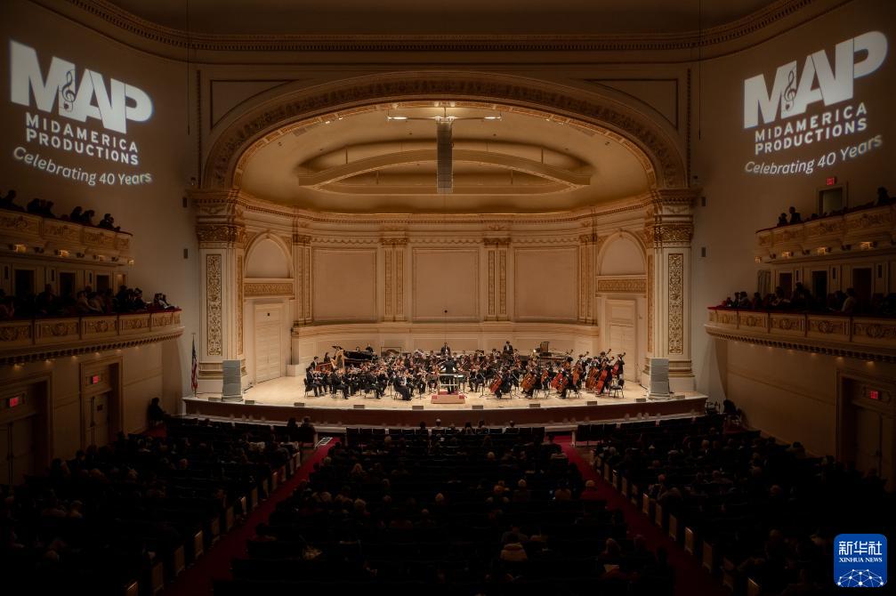 11月24日,来自中央音乐学院交响乐团的艺术家在美国纽约卡内基音乐厅进行演出。新华社发(迈克尔·维奥拉果摄)